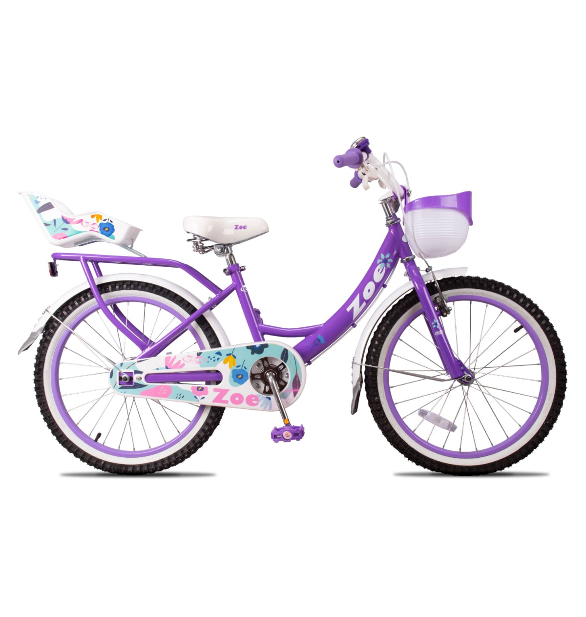 A bicicleta já vem completa, incluindo cestinha frontal e cadeira para boneca, tornando a experiência ainda mais divertida. Para a segurança, conta com proteção no sistema de tração, freio dianteiro V-brake e freio traseiro a tambor, garantindo frenagens suaves e eficientes. Os pneus balão proporcionam mais estabilidade e equilíbrio, ideais para quem está desenvolvendo confiança ao pedalar.