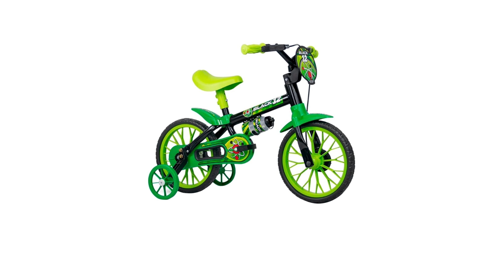 Bicicleta Infantil Aro 12 Nathor Black 12 Preto/Verde