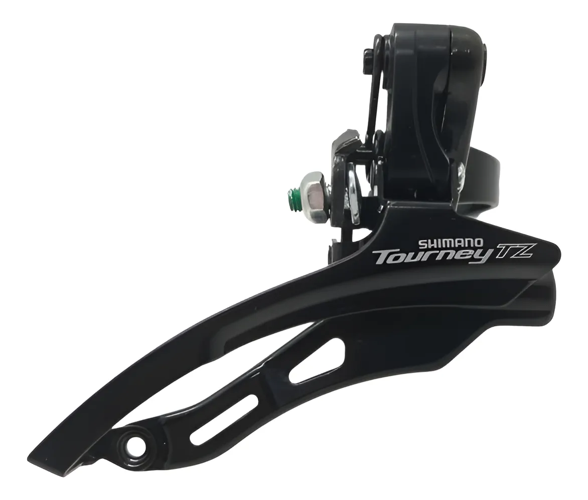 Câmbio dianteiro Shimano Tourney TZ FD-TZ500, abraçadeira baixa “Down swing” puxada do cabo por cima.