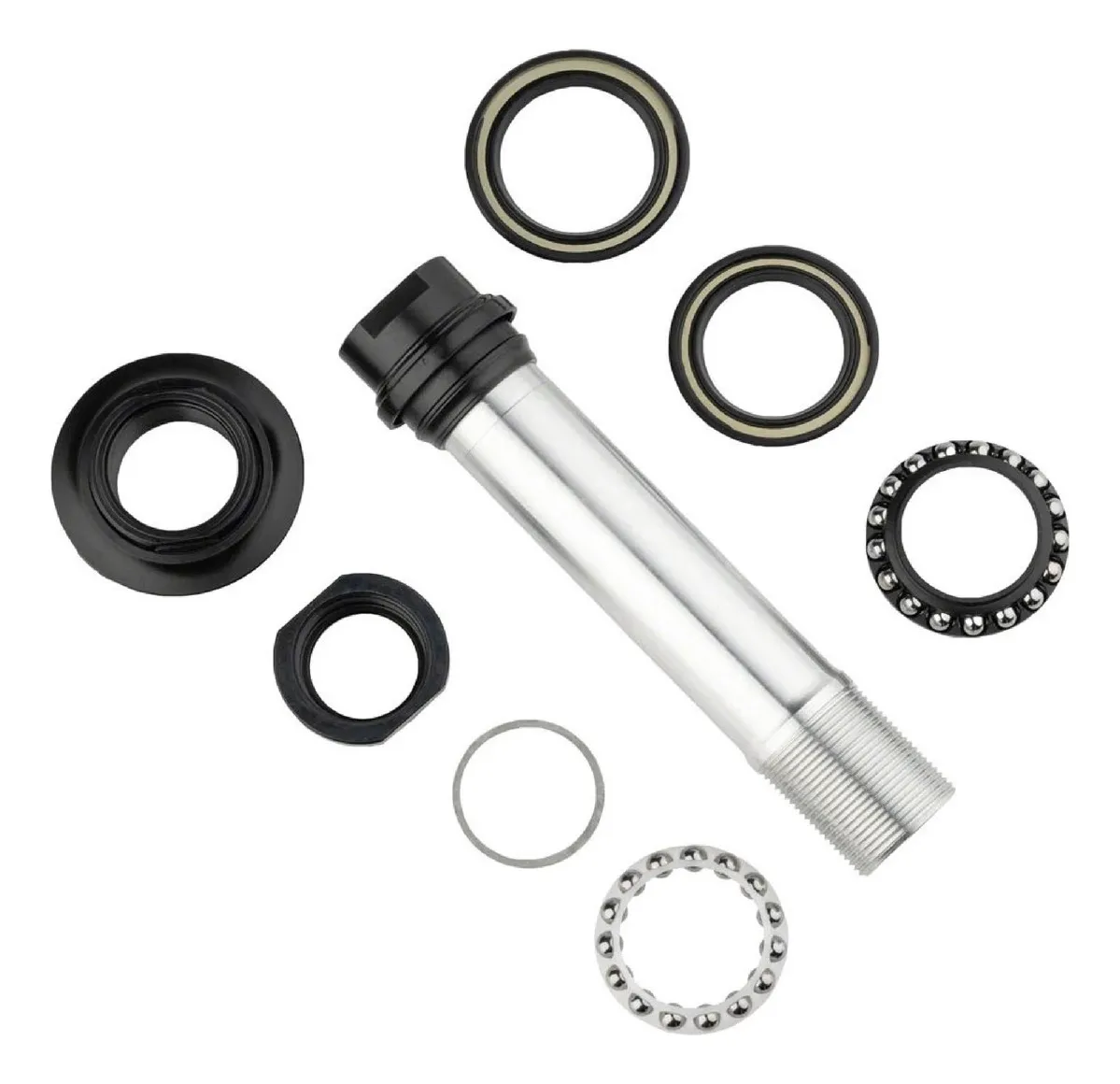 O kit de eixo Shimano para cubos Dianteiro Alivio HB-MT400 é a unidade de eixo oco completa, incluindo as esferas, arruelas de vedação e porca do eixo. O eixo é feito de alumínio e tem um diâmetro de 15mm.