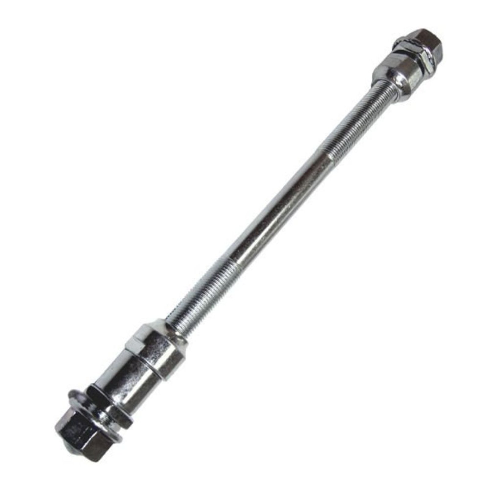 Com um comprimento extra longo de 200mm, este eixo traseiro é especialmente projetado para bicicletas com marchas, acompanhado de porcas e espaçadores para facilitar a instalação e o ajuste. Seu acabamento polido e preto oferece um visual moderno e sofisticado.