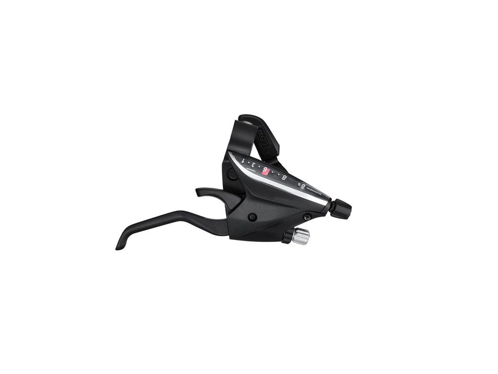 As alavancas de câmbio ST-EF65 contam com 8 velocidades os quais estão ligados ao guidão com braçadeira. Projetados para uso em Mtb são construídas com materiais como alumínio, resina sintética e aço, materiais adequados para suportar o uso intenso, além disso a alavanca de freio foi acoplada ao sistemas em um modelo moderno e despojado, deixando o cockpit mais limpo e organizado e funcional.
