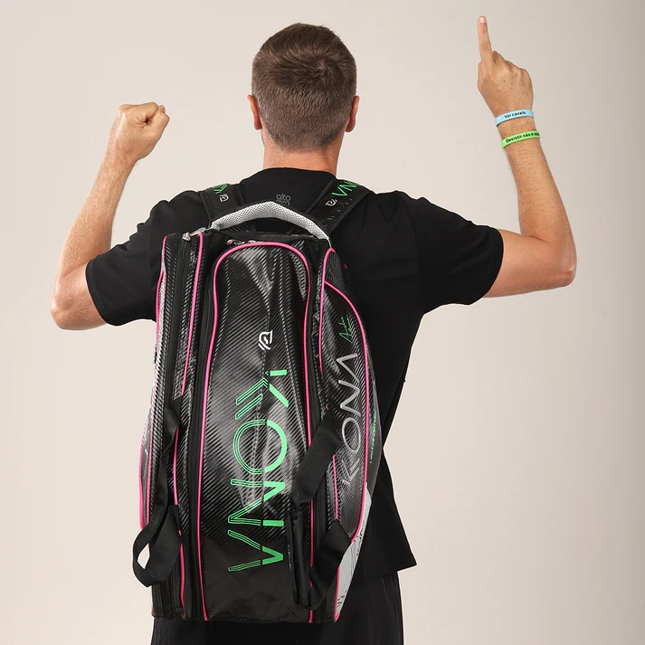 Raqueteira de Beach Tennis prática, impermeável e de alta durabilidade, comporta até 5 raquetes confortavelmente no compartimento maior e mais 2 no compartimento térmico.
